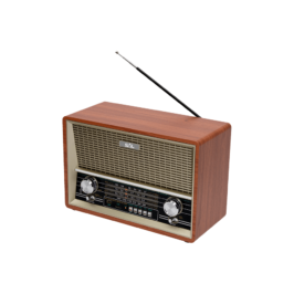 | Opis | Radio prijemnik, 4in1, RETRO dizajn, bežična Bluetooth veza, MP3 reprodukcija, žičani audio ulaz ( AUX IN ), 4- pojasni AM / FM / SW1 / SW2 radio. priključak za slušalice 3.5 mm, klasična drvena zvučna kutija sa dva zvučnika.
