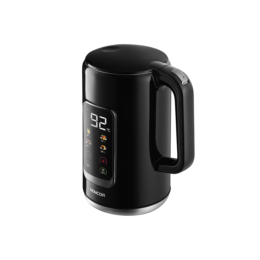 | Specifikacije | Maksimalni kapacitet 1,7 L Pripremljeni raspon temperatura 40/70/80/90/100 °C Snaga 2200 W Bijelo LED osvjetljenje zaslona Dupli zidovi ✓ Trostruki sistem zaštite ✓ Sigurnosno automatsko isključenje ✓ Zaštita od kuhanja na suho ✓ Središnji priključak 360° ✓ Boja Crna |